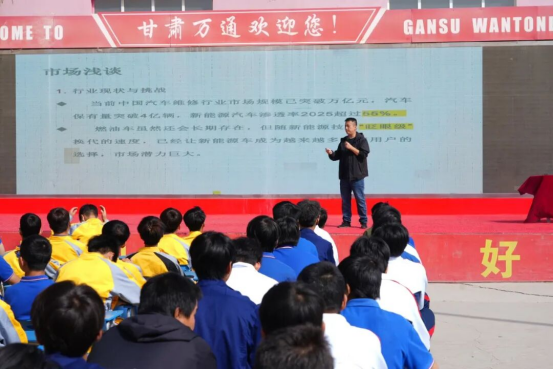 此次讲座是甘肃万通技工学校与甘肃途马汽车销售服务有限公司“人才共育计划”的重要环节。双方已就共建“新能源销售服务实训基地”、开发“1 + X证书定制课程”、联合开展技术攻关等事项达成合作。未来,将通过“订单班”“现代学徒制”等模式,为西北地区汽车产业升级输送更多“懂技术、会服务、善创新”的复合型人才。