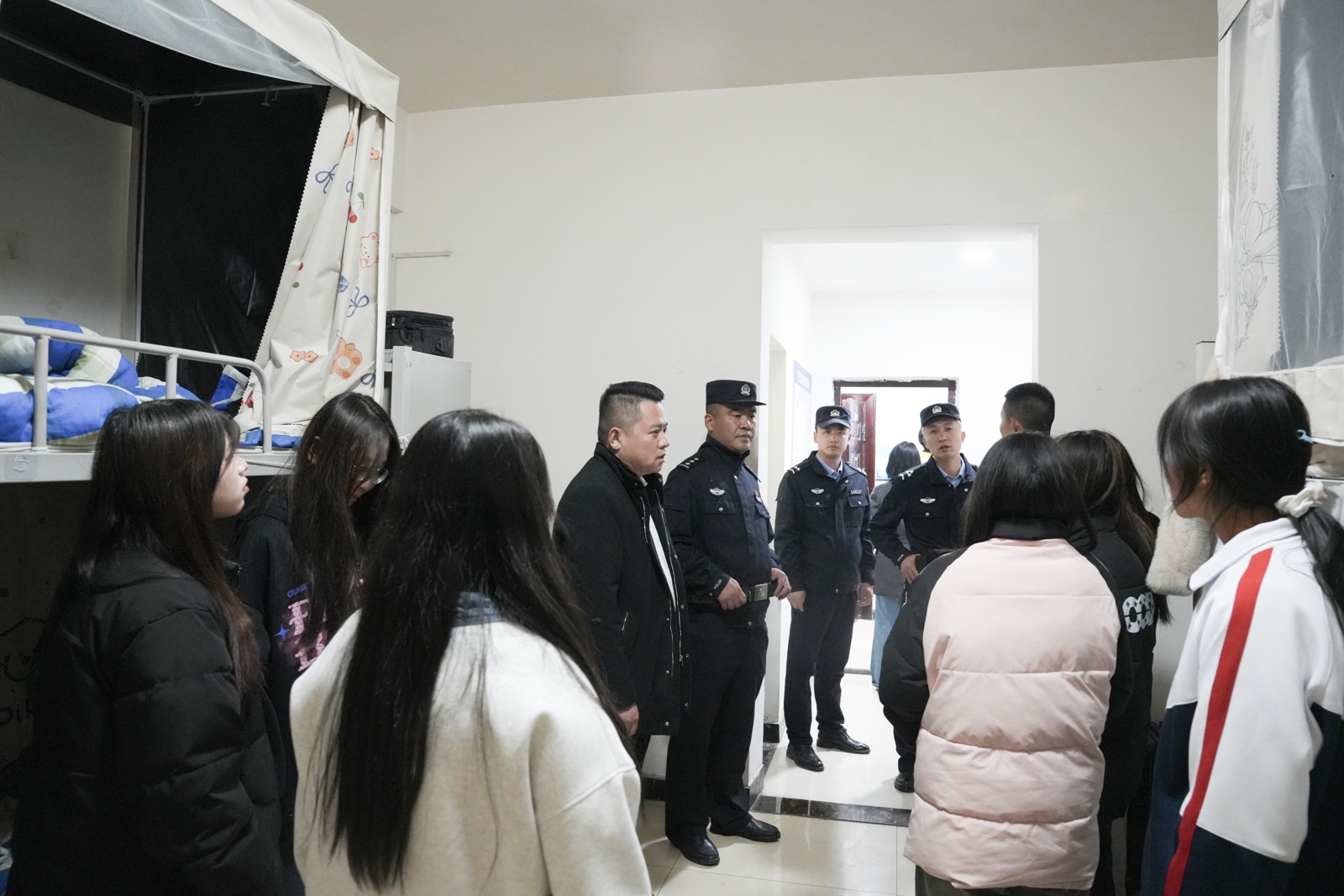 检查过程中,副校长李浩瀚强调,校园安全是办学治校的底线,全体师生要时刻绷紧安全之弦,学校将持续深化警校合作,常态化开展安全排查与教育;学生处主管万雄对宿舍安全管理、学生行为规范提出明确要求,要求班主任筑牢日常管理“第一道防线”;民警结合典型案例,向同学们再次宣讲防校园欺凌、防电信诈骗、安全用电、遵守交通规则等知识,引导大家增强安全防范意识,自觉远离危险隐患。